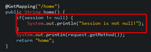 request는 들어있는 것을 확인했었으니 Session을 확인해봅니다.