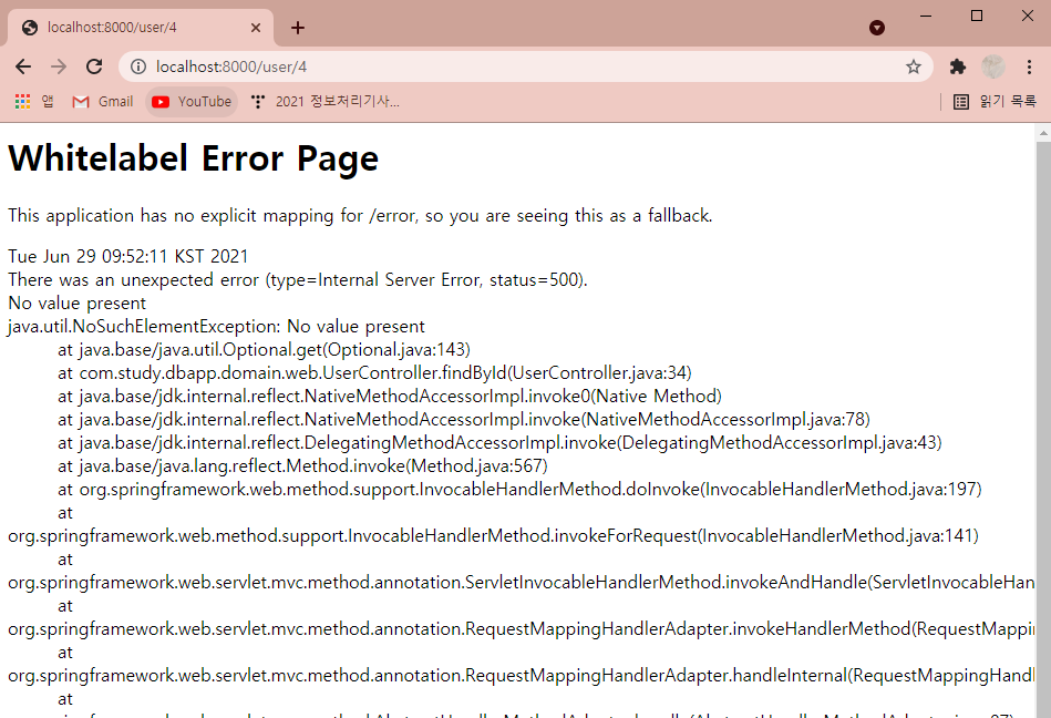 만약 데이터베이스에 저장되지 않은 id 값을 요청하면 어떻게 될까요?