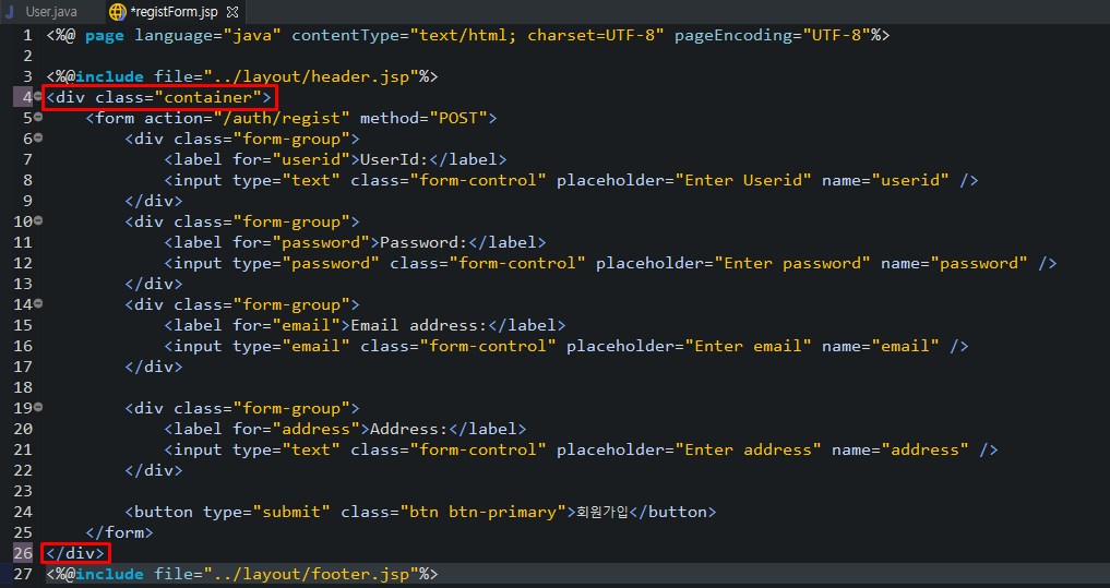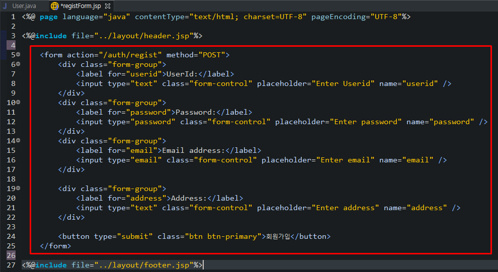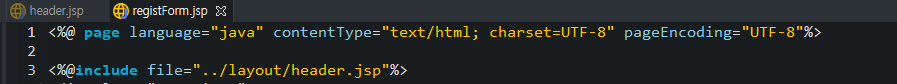 registForm.jsp 파일에 include해서 header.jsp 파일 코드가 그대로 실행되도록 해줍니다.