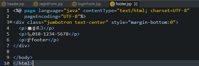 이렇게되면 hearder.jsp에서 없었던 닫는 태그가 footer에서 완성됩니다.