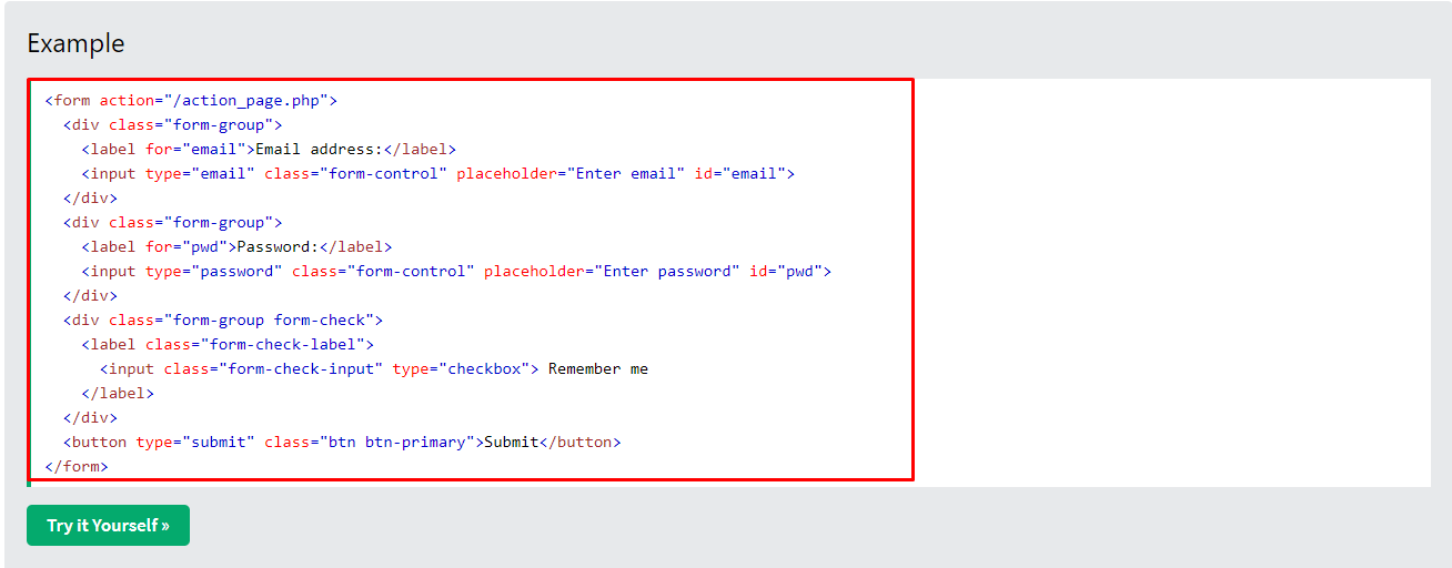 회원가입 페이지를 구성하기 위해서 다시 w2schools로 가줍니다.