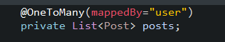 양방향 조인을 하기 위해서 user 테이블에 있는 컬렉션에도 @OneToMany annotation을 붙여줍니다.