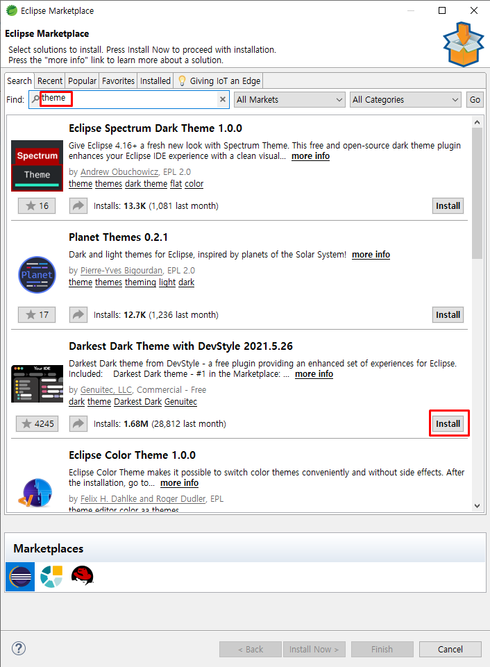 theme를 검색하여 원하는 테마를 다운로드 해줍니다.