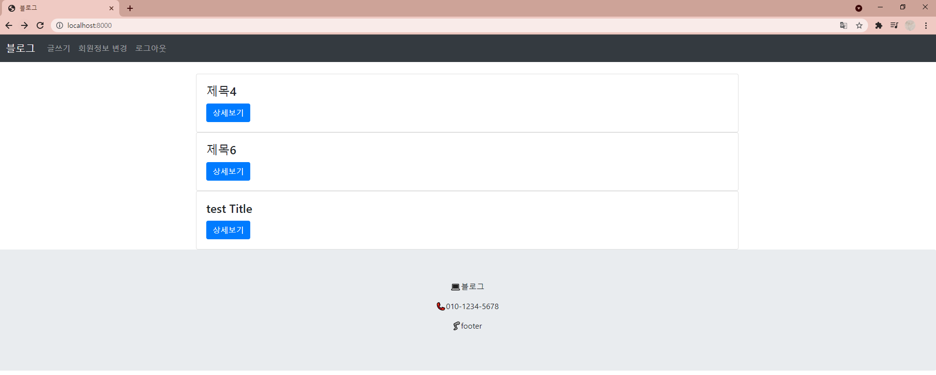 상세보기 페이지로 이동 시 수정/삭제 버튼이 있습니다.