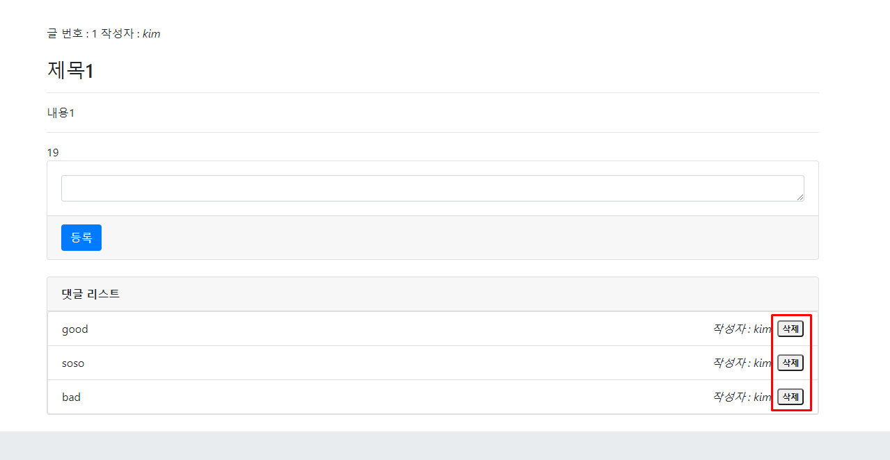 다른 사람이 쓴 댓글임에도 불구하고 삭제 버튼이 보입니다.