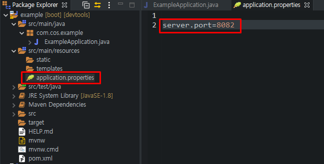 application.properties는 JSP에서 web.xml, context.xml, server.xml의 모음이라고 보시면 됩니다.