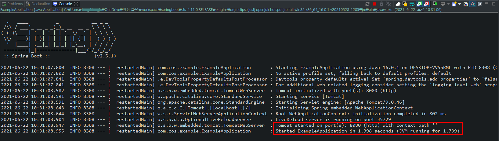 정상적으로 실행되면 콘솔창에 이렇게 뜹니다.