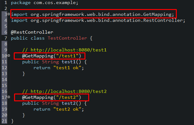 각 매서드에 @GetMapping annotation을 달아주고 마찬가지로 import까지 해줍니다.