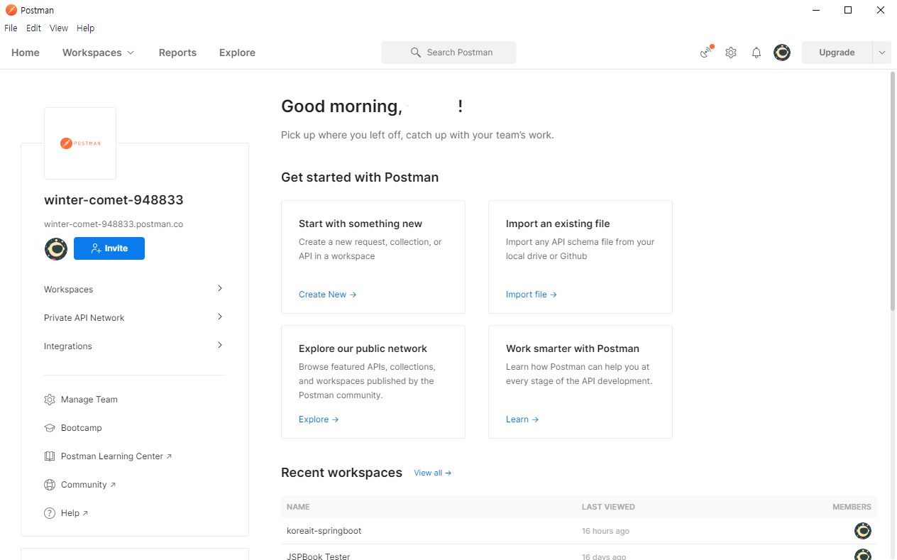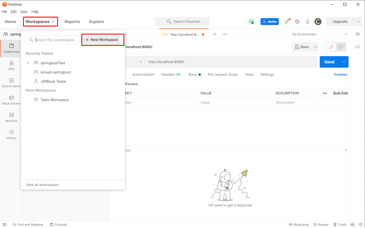 이름을 입력하고 Create Workspace 눌러줍니다.